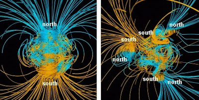 D.Breakingthesilence .: instead of the poles- North and south – formign a simple torus field, the magnetic fields right now are in complete flux- kinda like the second picture