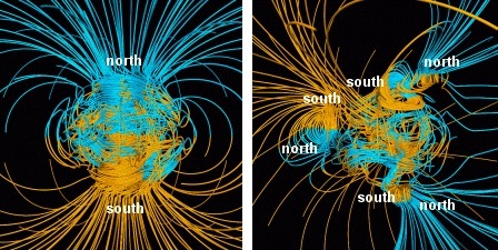 D.Breakingthesilence .: instead of the poles- North and south – formign a simple torus field, the magnetic fields right now are in complete flux- kinda like the second picture